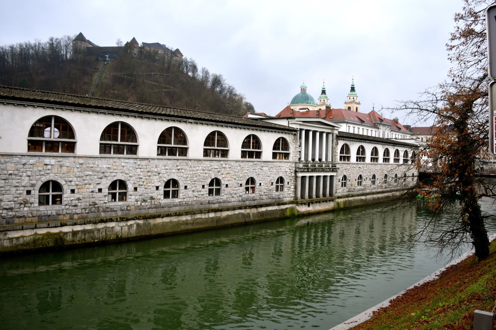 | Street-side view of Plečnik's colonnaded market. The man liked colonnades. |